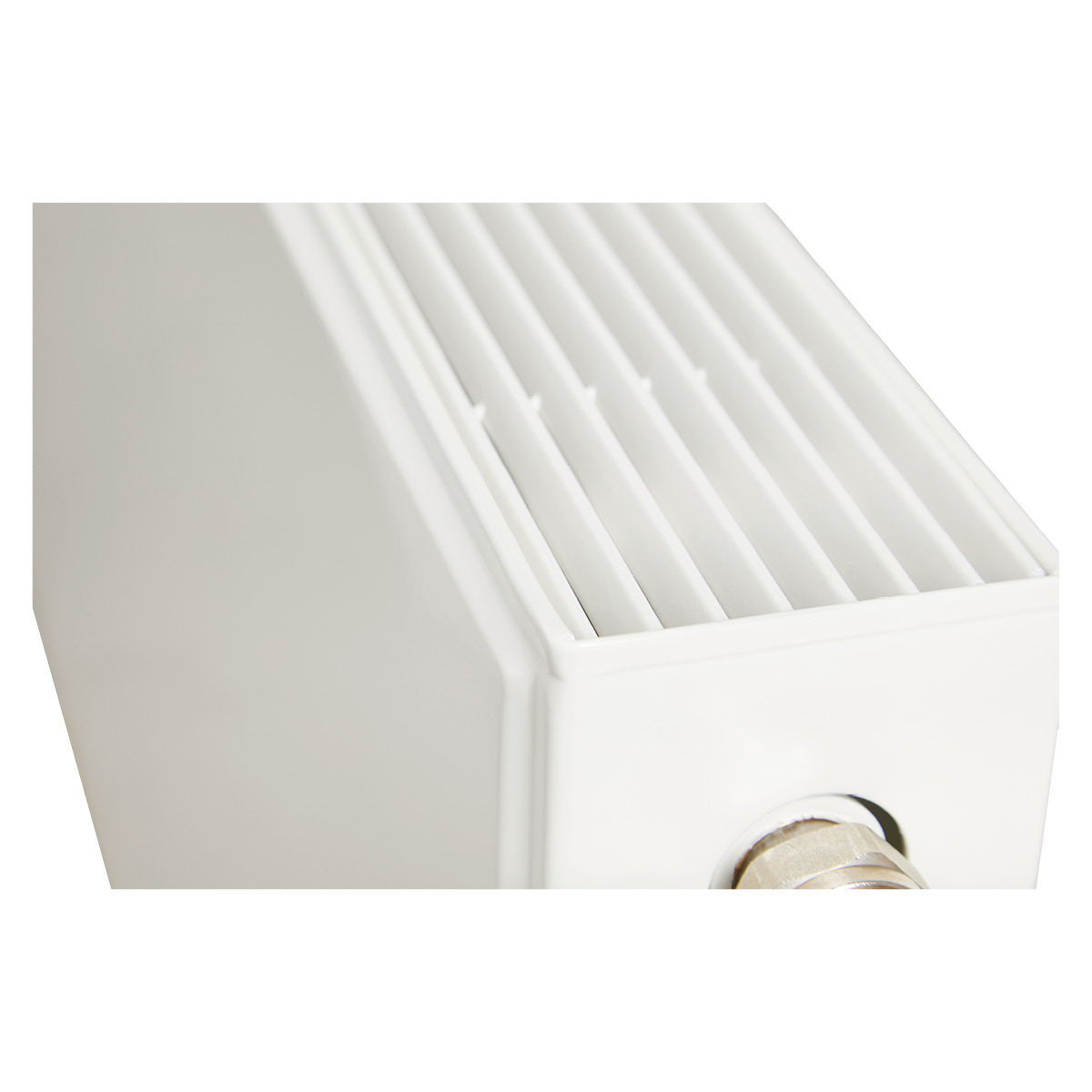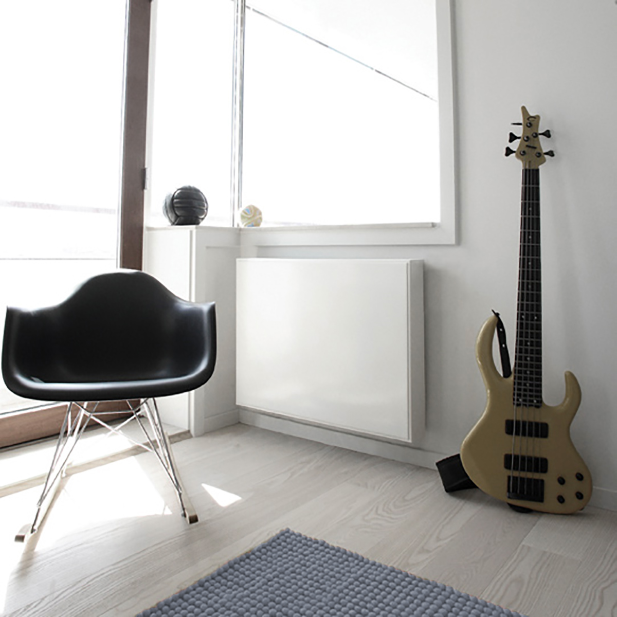 Hudevad Fionia Horizontal is a beautifully simplistic design radiator. It has a high level of radiant heat, and is quick to adapt temperatures due to low water content. Fionia has a 2 mm thick front plate with the characteristic Hudevad edge, closed sides and is fitted with a removable grille with angled slats, so you can´t see the convectors inside. The grille is recessed in the top of the radiator so that it is flush with the radiator edge.