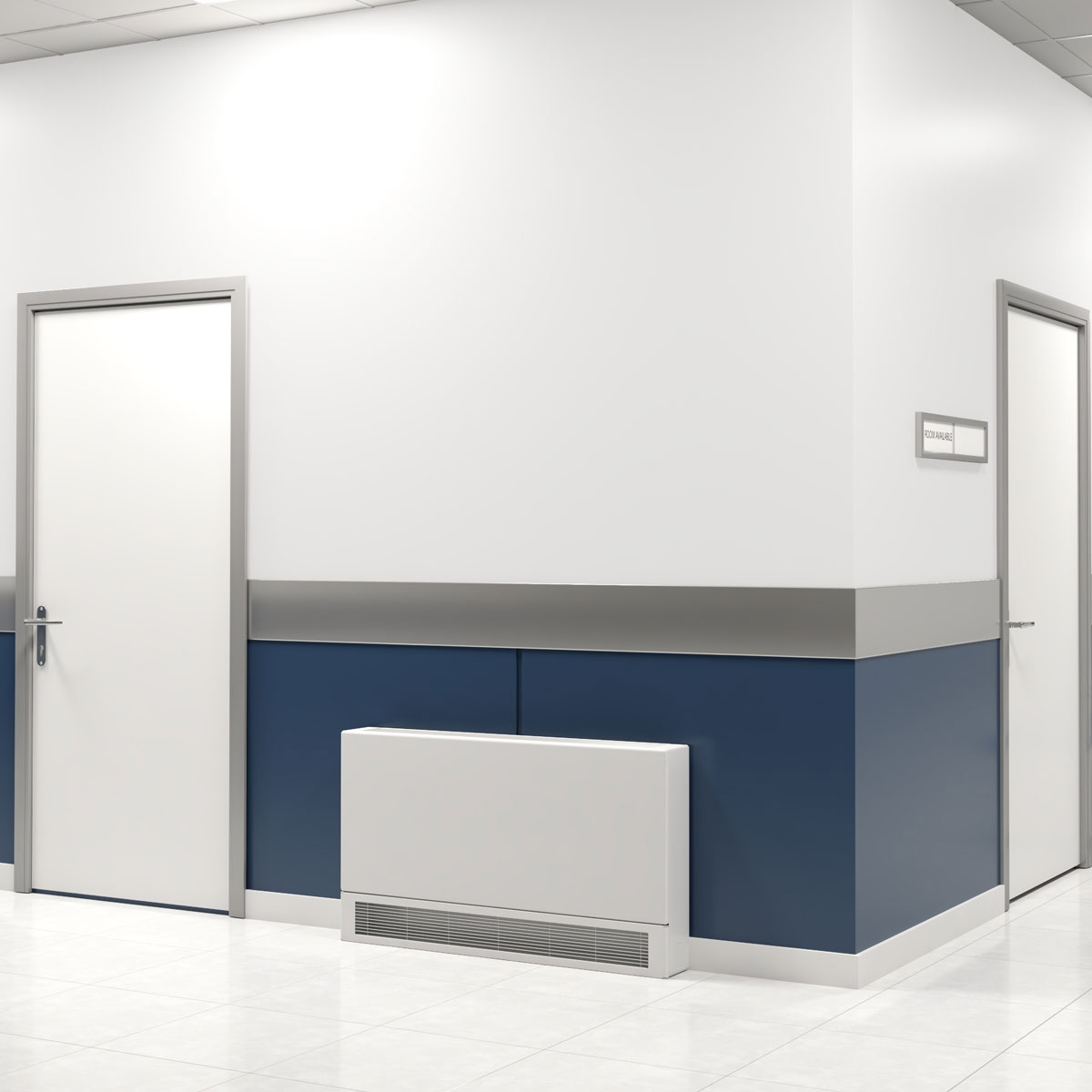 Hudevad LST I Plus is a safety radiator that is often used in public buildings in countries where the water flow temperature is high to prevent burns. The radiator is simple and quick to install and is supplied with an attractive, flat panel outer casing, which is totally reversible to allow piping flexibility. Furthermore the cabinet is fitted with safety brackets to prevent unauthorized access to the emitter, which is encapsulated inside.